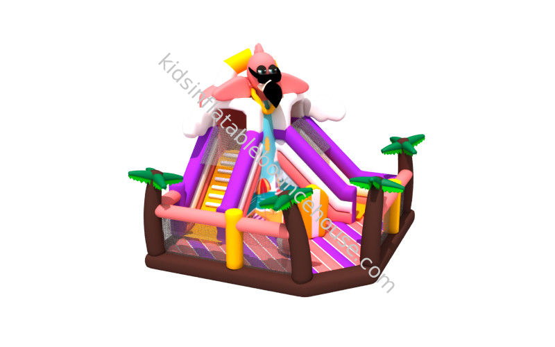 New Flamingo Beach Theme Colorful Inflatable Fun City Coconut Palms Inflatable Bounce with Slide Commercial Inflatable