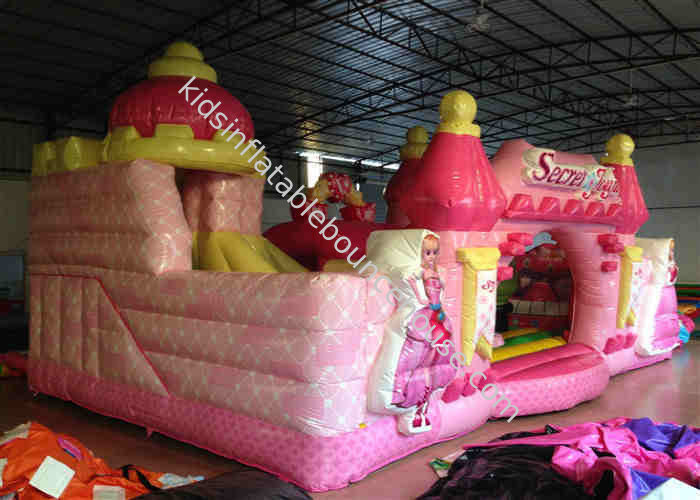 Princess theme fun city,using big funny inflatable cartoon and inside of the inflatable fun city has many obstacles,the design is very special, children need to climb the slide into the inflatables and there only has one entrance.The main color is pink,which is lovely for children.